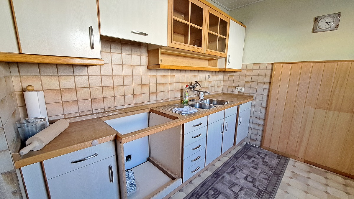 Das Ein- bis Zwei- Familienhaus in ruhiger und zentraler Lage von Geislingen, verfügt im Erdgeschoss über eine Wohnküche, ein großes Wohnzimmer, ein Schlafzimmer, einen großen Flur und ein Gäste WC.