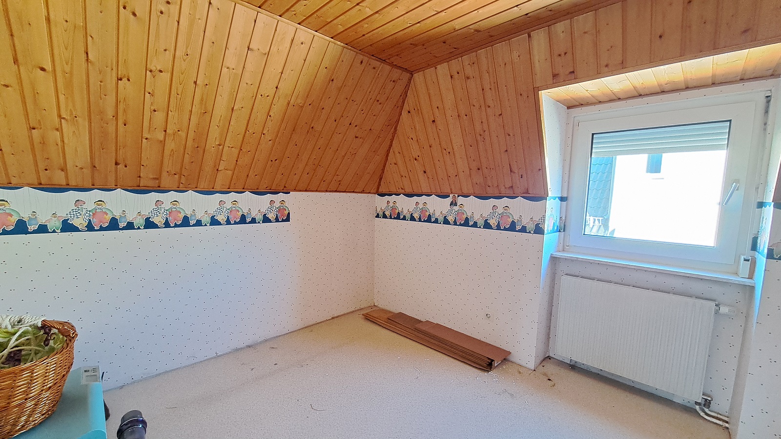 Im Obergeschoss befindet sich ein Schlafzimmer, ein Kinderzimmer, ein Tageslichtbad mit WC ,Wanne , Bidet und Waschbecken, sowie ein Gäste WC. Im Dachgeschoss befinden sich zwei weitere Zimmer.